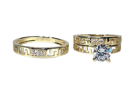 Trio de Matrimonio con diseño en oro 14k, Cz, 4.0Dwt, 6.2G