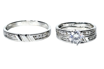 Trio de Matrimonio Oro Blanco 14k, Cz, 4.2Dwt, 6.5G