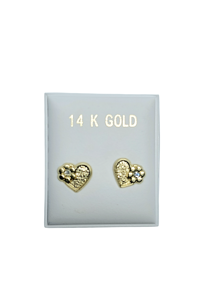Pantalla de Corazon Oro con una flor dentro Cz