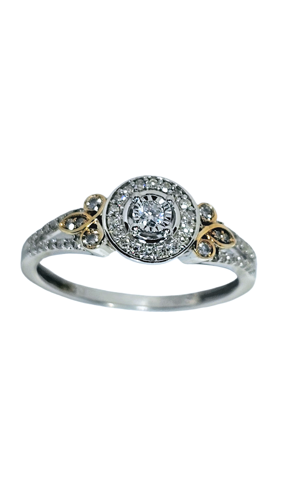 Sortija en oro Blanco con detalles en Oro Amarillo y diamantes 10k, 1.5Dwt